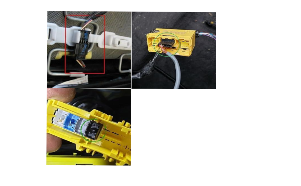 2. Buscar el conector amarillo ( de bajo del asiento de copiloto ). La forma del conector puede variar