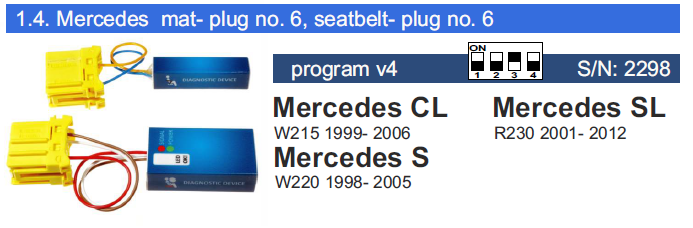 EMULADOR SENSOR OCUPACIÓN ASIENTO SRS / ESTERILLA AIRBAG MERCEDES BENZ W215 1999-2006 W220 1998-2005 R230 2001-2012