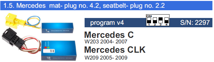 EMULADOR SENSOR OCUPACIÓN ASIENTO SRS / ESTERILLA AIRBAG MERCEDES BENZ W203 2004-2007 W209 2005-2009