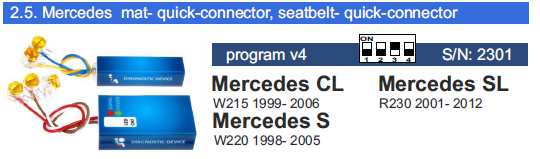 EMULADOR SENSOR OCUPACIÓN ASIENTO SRS / ESTERILLA AIRBAG MERCEDES BENZ W215 1999-2006 W220 1998-2005 R230 2001-2012