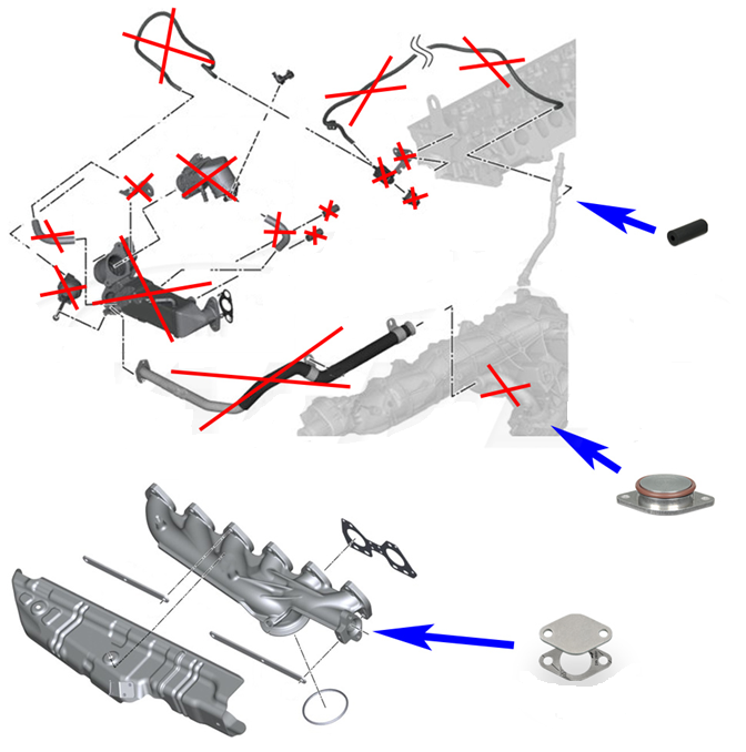 Generalmente hasta 2002-2004 no aparecerá ninguna luz de advertencia de la ECU. Modelos posteriores con válvulas EGR neumáticas y electrónicas, el montaje de esta pieza puede provocar la aparición de la luz de advertencia de la ECU. Recomendamos un nuevo mapa de la ECU para que la función EGR pueda eliminarse por completo, esto se puede realizar mediante el sintonizador.